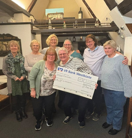 «Nordstrander Insel un Halligscholl» einen Scheck im Wert von 3.500 Euro. Für Gina Zerbe-Paulsen (vorne li.) war die Überraschung in Anbetracht des hohen Betrags sehr gross, was sie mit vielen Lobes-